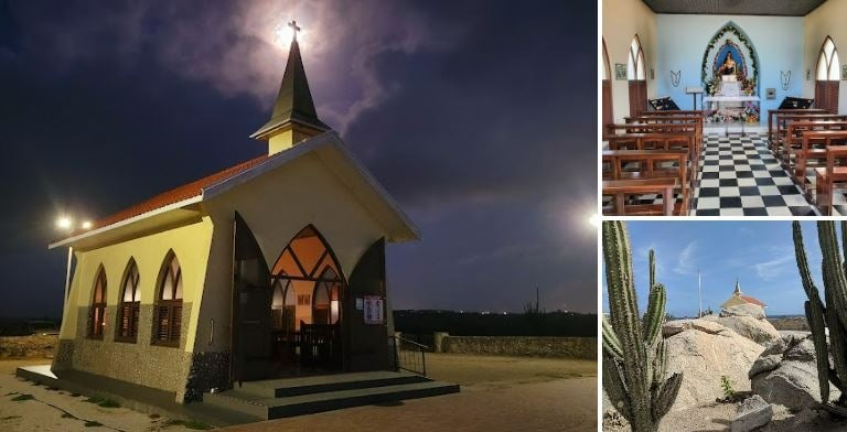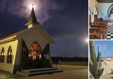 Alto Vista Chapel, aka 'Pilgrims Church,' perched on the hills above Aruba's north shore, is a serene Catholic chapel, 27 km north of Venezuela.