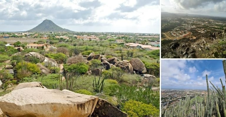 Hooiberg: A 165 m high volcanic formation in the heart of Aruba, visible from every corner of the island. Its Dutch name translates to 'haystack,' reflecting its unique resemblance.